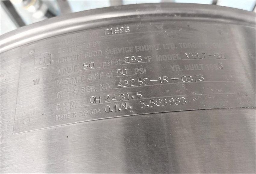 Crown Marmite Tilting Electric Kettle model VELT-30 30 gal (Handling Fee $250) (Located Hinchinbrooke, QC, Canada)