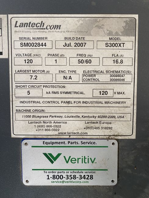 Lantech S300XT Overhead Pallet Wrapper, S/N SM002844, V120, Year 2007 (Loading Fee $400) (Located Fort Worth, TX)