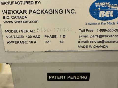 WEXXAR BEL TAPE CASE SEALER, MODEL BEL 5150, WITH SEMI AUTOMATIC CASE FORMER, ELECTRO PNEUMATICALLY DRIVEN, QUICK SIZE CAHNGE CAPABILITY WITH ONLY 3 CHANGING POINTS, 15 CASES PER MINUTE, 1 PHASE, 120 VAC (LOCATED IN CHARITON, IA) (HANDLING, LOADING & SITE MGMT FEE: $25.00)