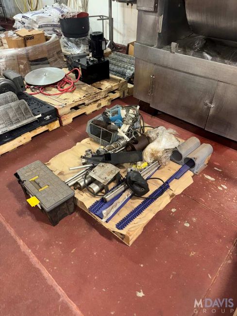 INCLUDES FILTERS, CYLINDERS, FLOW METER, MOTOR, S/S MESH CONVEYOR, HYDRAULIC PUMP, NEW PLASTIC CONVEYOR BELT, & OTHER PRESENT CONTENTS ON LOTTED PALETS (LOCATED IN NASHVILLE, NC) (RIGGING, HANDLING, LOADING & SITE MGMT FEE: $100)