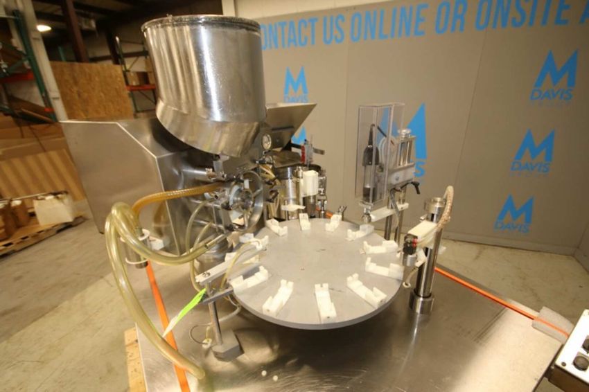 M & O Industries S/S Syringe Filler, Model Monobloc, SN P-216, with 12-Station Turntable, Cap Feeder with Allen Bradley SLC 5/01 PLC Controller, (Note: Possibly Missing Some Parts), 115V (INV#101581) (Located @ the MDG Auction Showroom in Pgh., PA) (Skidding, Loading, Handling and Site Management Fee $900)