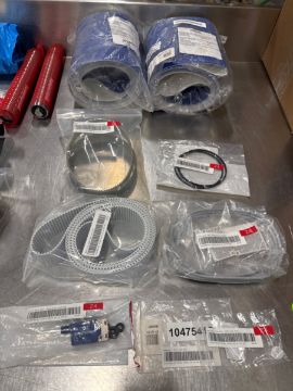 VEMAG SHUTTLE CONVEYOR PARTS, INCLUDES GEAR MOTOR, TRIM BLADES, BELTS, BUSHINGS, SEALING RING, SERVO GEAR MOTOR, DEFLECTION ROLLERS, SWITCHES & SEALS, (INV. #34817)(LOCATED @ MDG SHOWROOM PGH, PA), (RIGGING, HANDLING, LOADING & SITE MGMT FEE: $50)
