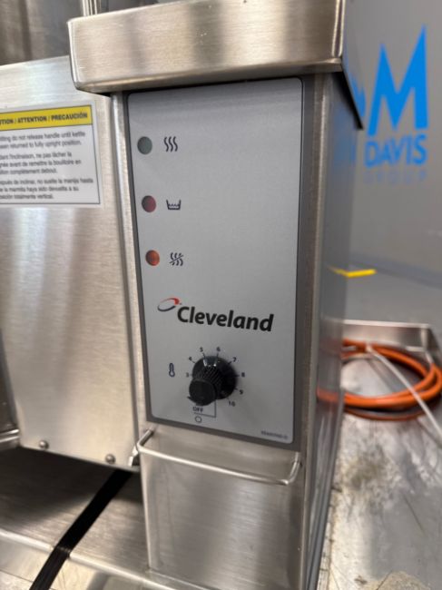 CLEVELAND 12 GALLON JACKETED S/S TILTING KETTLE, MODEL KGT-12-T, S/N 181023056976, NAT. GAS HEATED, INPUT - 53000 BTU/HR, 120V (INV. #35971)(LOCATED @ MDG SHOWROOM PGH, PA) (RIGGING, HANDLING, LOADING & SITE MGMT FEE: $200)