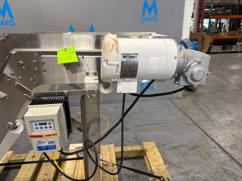 Z CONFIGURATION S/S BELT CONVEYOR, APROX. 88 L WITH 17 1/2 W INTRALOX STYLE PLASTIC BELT CONVEYOR WITH 10 FLIGHTS, 25 H TO 46 H, WITH LEESON 1 / 3/4 HP DRIVE MOTOR, 1760 / 1450 RPM, 208-230 / 460V, WITH LENZE AC TECH DRIVE, ON CASTERS,(INV. #35898)(LOCATED @ MDG SHOWROOM PGH, PA), (RIGGING, HANDLING, LOADING & SITE MGMT FEE: $400)