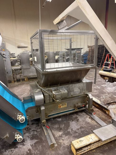 M/N 150052, S/N S/N 150603, 480 VOLTS, 3 PHASE, INCLUDES S/S HOPPER/CONVEYOR, WITH FLOOR MOUNTED RAILS, WITH INCLINE CONVEYOR