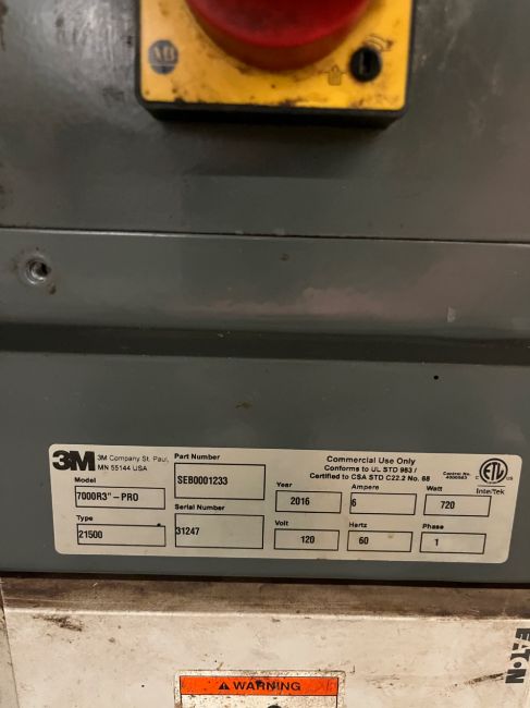 MODEL:7000R3-PRO PART NO:SEB0001233 YEAR:2016 VOLT:120 HERTZ:60 PHASE:1 (RIGGING, LOADING, & SITE MANAGEMENT FEE: $350.00 USD)(LOCATED IN PHOENIX, AZ)