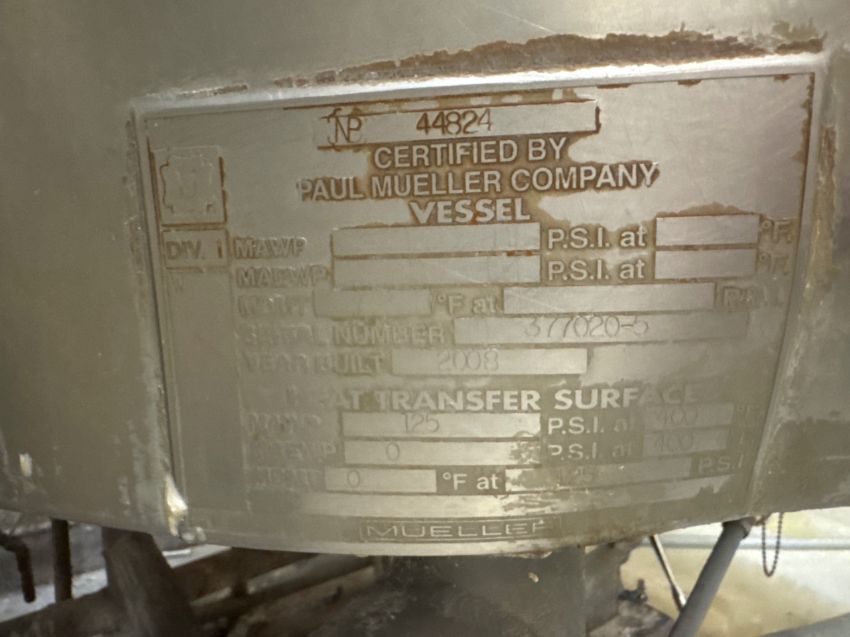 S/N S/N 377020-5, MAWP 125 PSI @ 400 F, WITH OFFSET 40 HP MOTOR, WITH 3 HP TOP MOUNTED SCRAPE S/S AGITATION, MOUNTED ON S/S SKID (RIGGING, LOADING, & SITE MANAGEMENT FEE: $1,250.00 USD)(LOCATED IN PHOENIX, AZ)