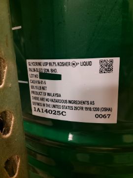 (2) 55 Gallon Drums of Glycerine USP 99.7% Kosher Liquid (Location 43-1)(RIGGING, LOADING, & SITE MANAGEMENT FEE: $50.00 USD)(LOCATED IN PHOENIX, AZ)